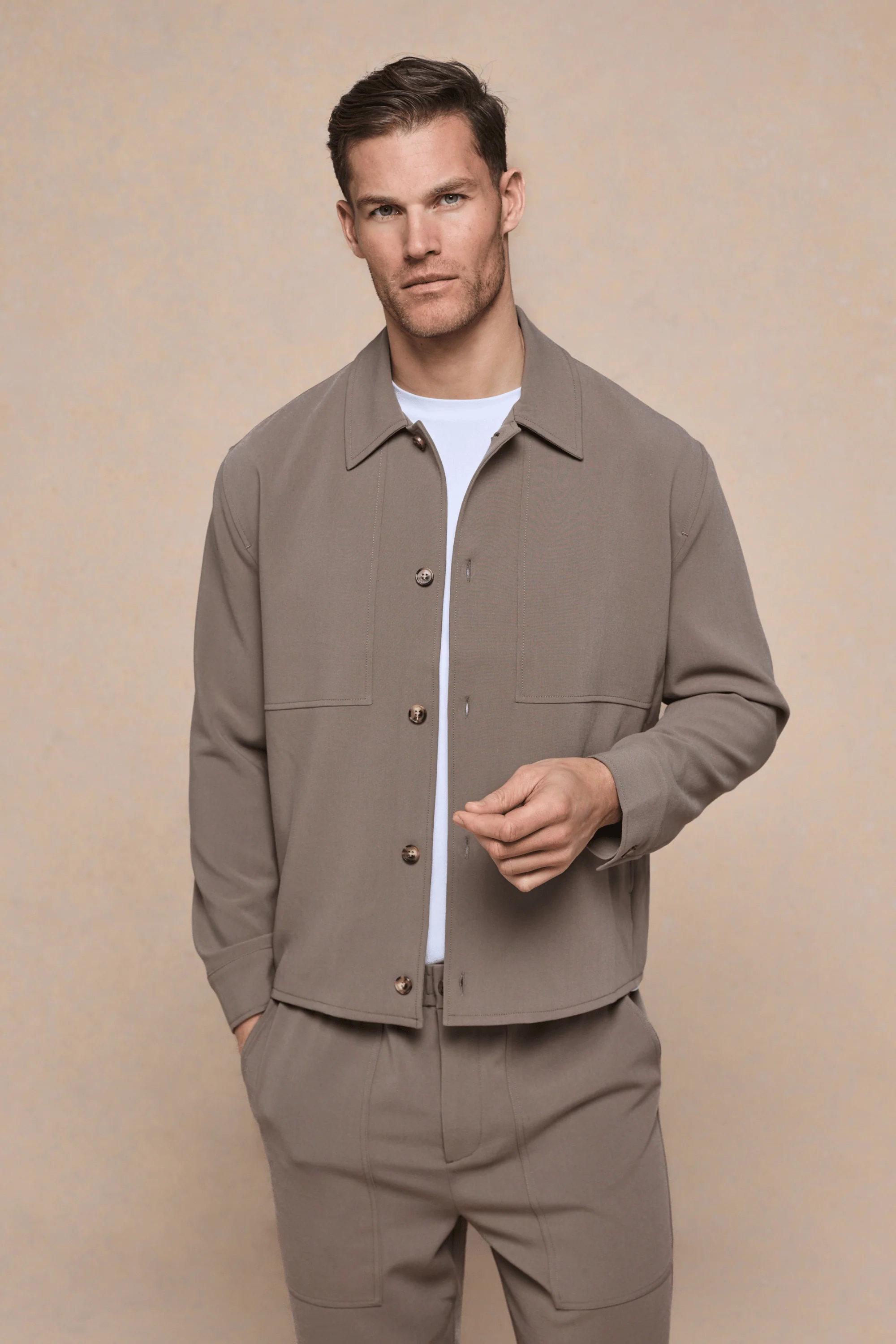 The Julien Relaxed Panelled Jacket is fully lined for comfort and ease of layering. Designed with subtle top-stitched panel detailing, it features a relaxed silhouette, classic side entry pockets and branded button closures for a minimalist finish. Pair with the Julien Relaxed Panelled Trousers for a considered head-to-toe set.